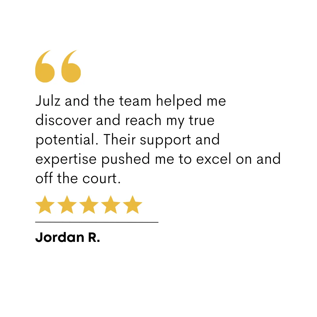 She produced 12 all-state players, 5 conference MVPs, 30 all-conference players, and numerous scholarship recipients. Her experience as a head coach and NCAA Division I player gives her unique insight into athlete development. Julz continues to help dedicated athletes achieve their goals and reach new heights. Her mentees attest to her ability to bring out the best in them.